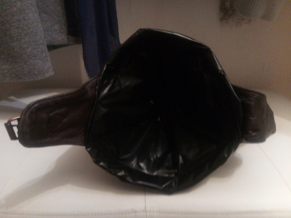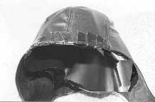 • Cappello o elmetto che copre l’intera testa, fatto di vinile, gomma, pelle o altro materiale liscio a cui aderirà il nastro.